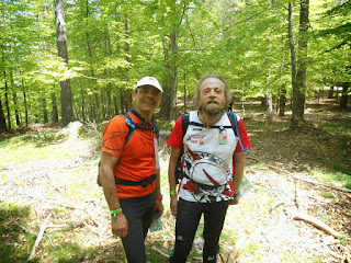 El dilema ara és baixar pel dret per terreny obert amb boixos pel mig o fer-ho per corriols donant molta més volta. Gaudim més del camp a través i no dubtem, avall que fa baixada. Noto un dolor a l'esquena que m'acompanyarà la resta de la rogaine. Un cop som al corriol de baix, tenim dubtes de a quina alçada estem per atacar la 86. Mentre tractem d'esvair els dubtes arribem els Bandolers, els nostres rivals en la categoria de Super-veterans. Tots dos equips ens llancem avall i ben aviat assolim la nova fita, la 86.
